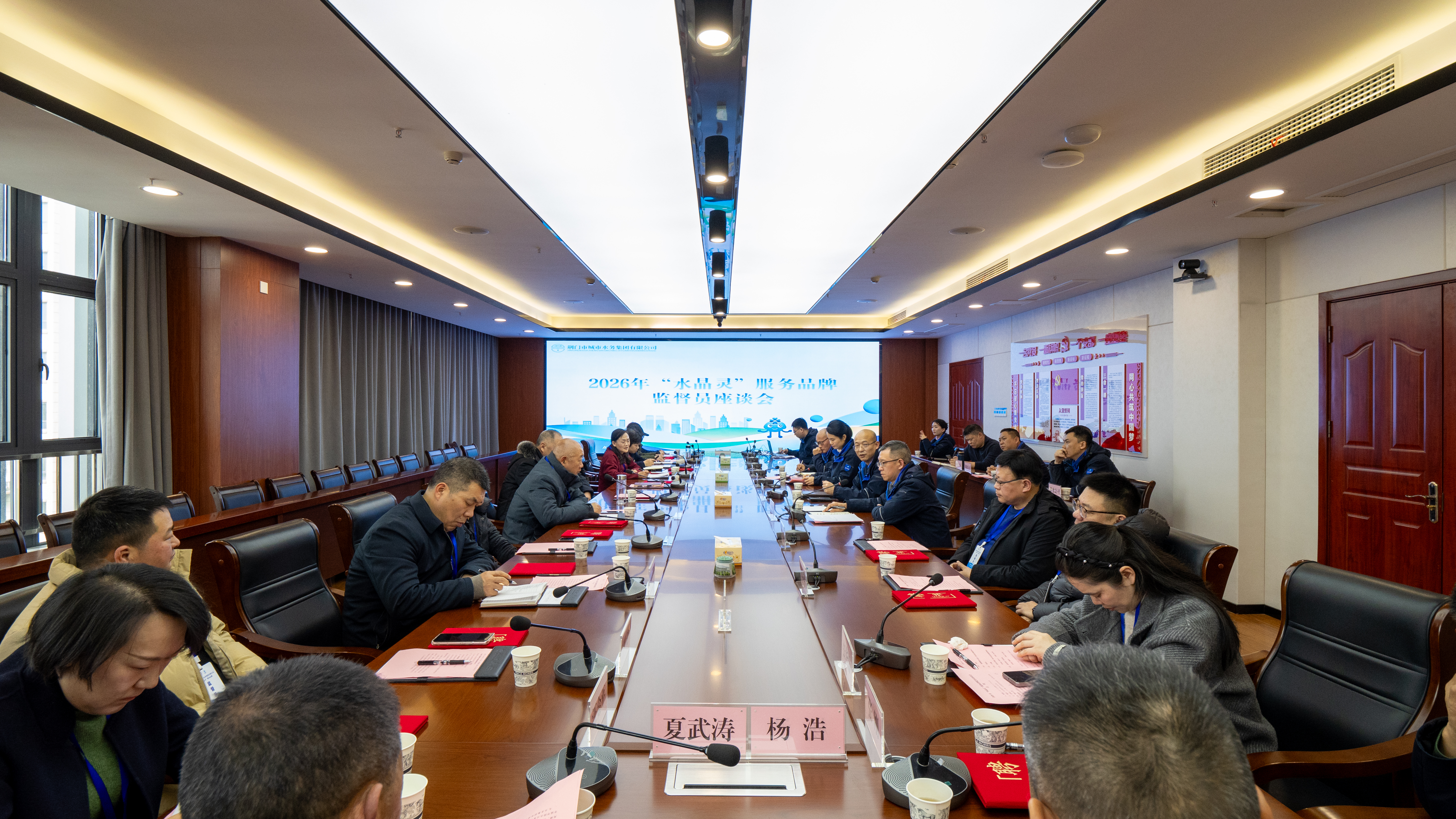 2月7日,市水務(wù)集團召開2026年“水晶靈”服務(wù)品牌監(jiān)督員座談會,開門納諫,傾聽用戶代表心聲。