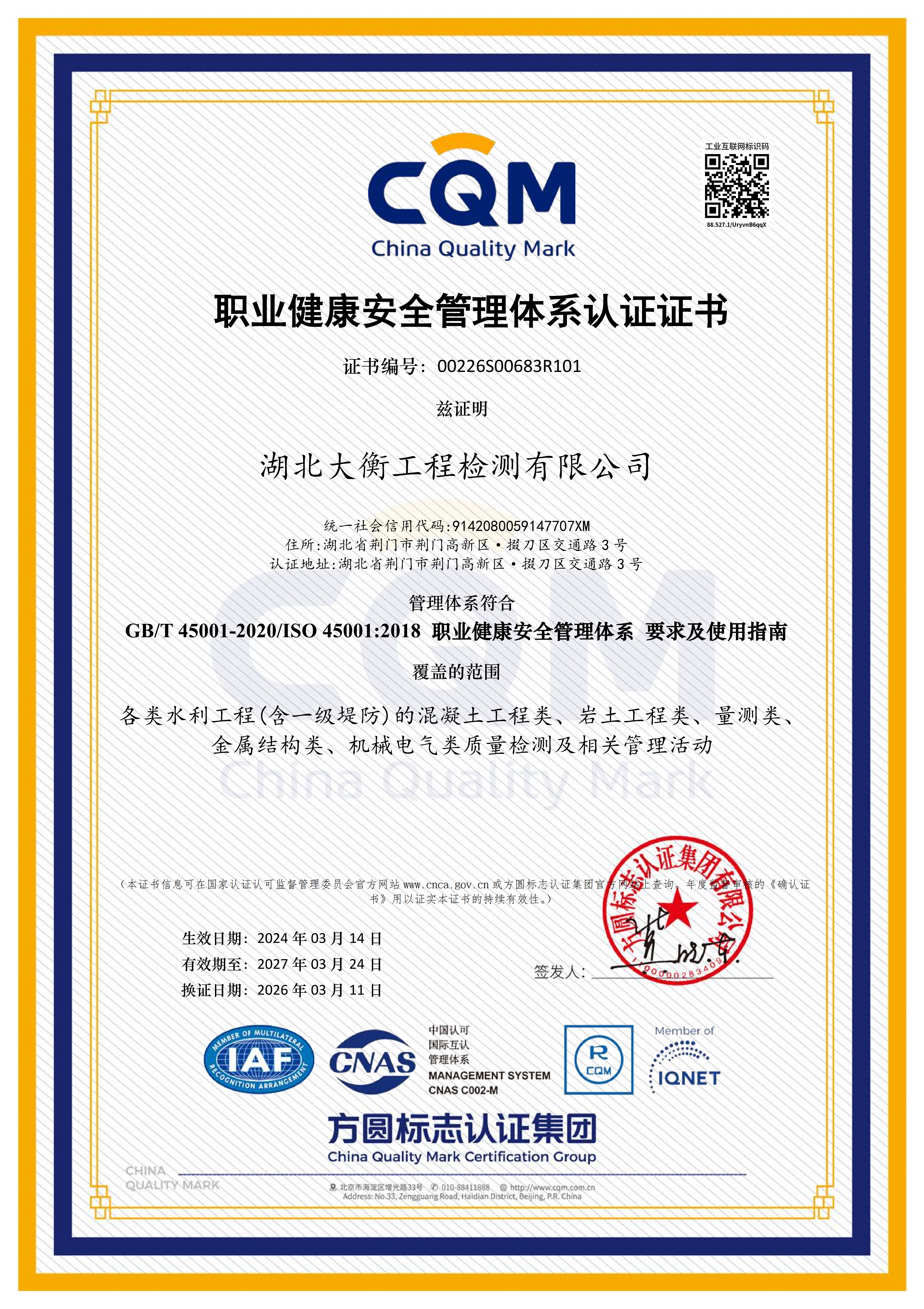 3月11日,市水務(wù)集團(tuán)下屬子公司湖北大衡工程檢測有限公司(以下簡稱“大衡公司”)順利通過QEO(質(zhì)量、環(huán)境及職業(yè)健康安全)三體系再認(rèn)證。