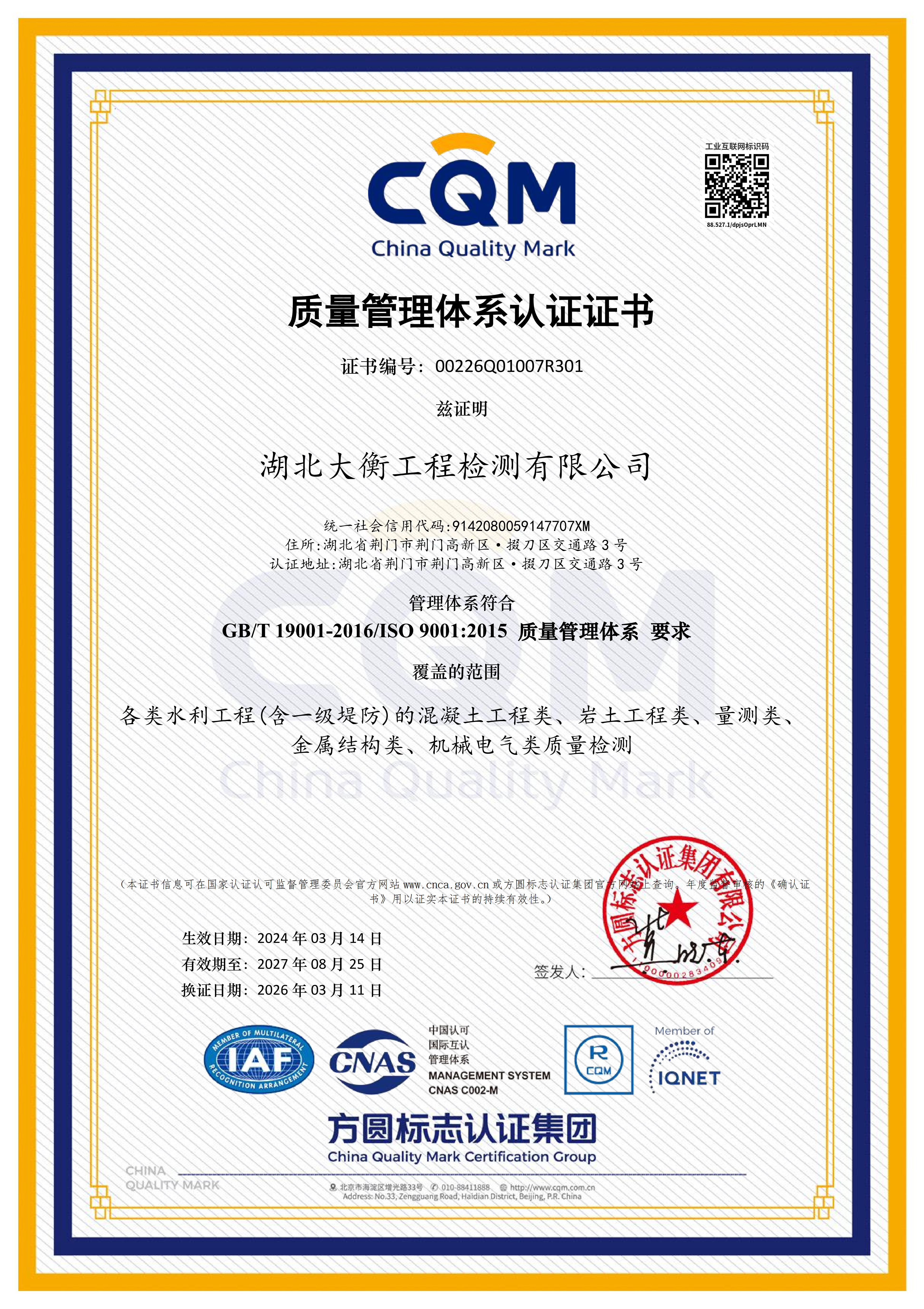 此次“QEO”三體系再認(rèn)證圓滿通過,是大衡公司持續(xù)深化國企改革、夯實(shí)管理基礎(chǔ)、提升核心競爭力的重要體現(xiàn)。下一步,大衡公司將嚴(yán)格對標(biāo)集團(tuán)“十五五”質(zhì)量發(fā)展專項(xiàng)規(guī)劃部署,健全一體化質(zhì)量管理體系,厚植質(zhì)量文化底蘊(yùn),強(qiáng)化水利工程檢測全流程精細(xì)化管控,持續(xù)鍛造規(guī)范化、專業(yè)化、可靠化的水利工程檢測服務(wù)品牌,為集團(tuán)高質(zhì)量發(fā)展提供堅實(shí)技術(shù)支撐與質(zhì)量保障。