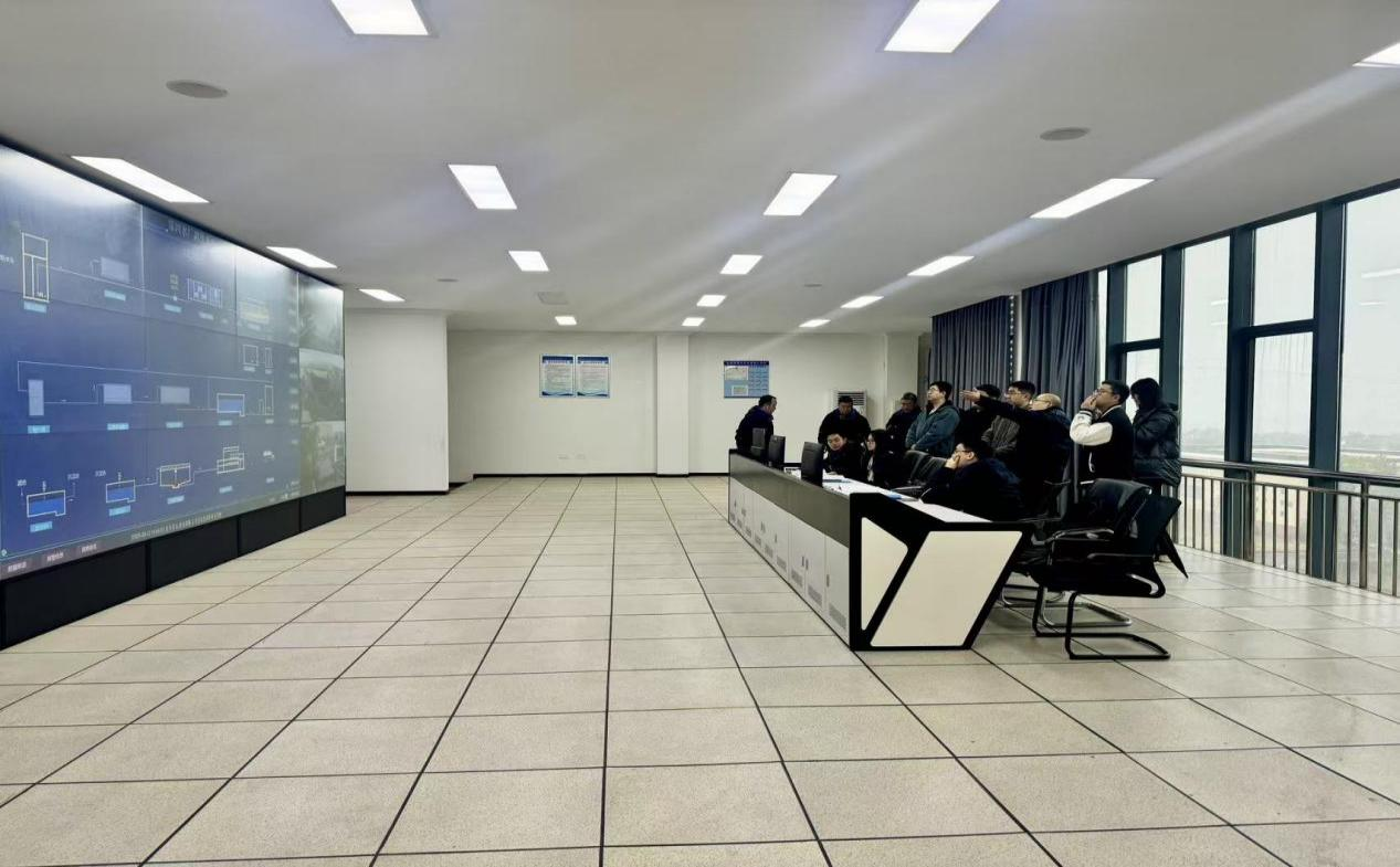 考察團(tuán)分赴集團(tuán)調(diào)度指揮中心與四水廠。在調(diào)度指揮中心,實(shí)地察看智慧水務(wù)平臺運(yùn)行成效,圍繞供水全網(wǎng)監(jiān)測、智能調(diào)度等技術(shù)與管理難點(diǎn)深入交流。在四水廠,重點(diǎn)察看生產(chǎn)工藝、自動(dòng)化設(shè)備及節(jié)能降碳設(shè)施,聚焦次氯酸鈉制備環(huán)節(jié)的能耗控制、安全運(yùn)維與成本管控。